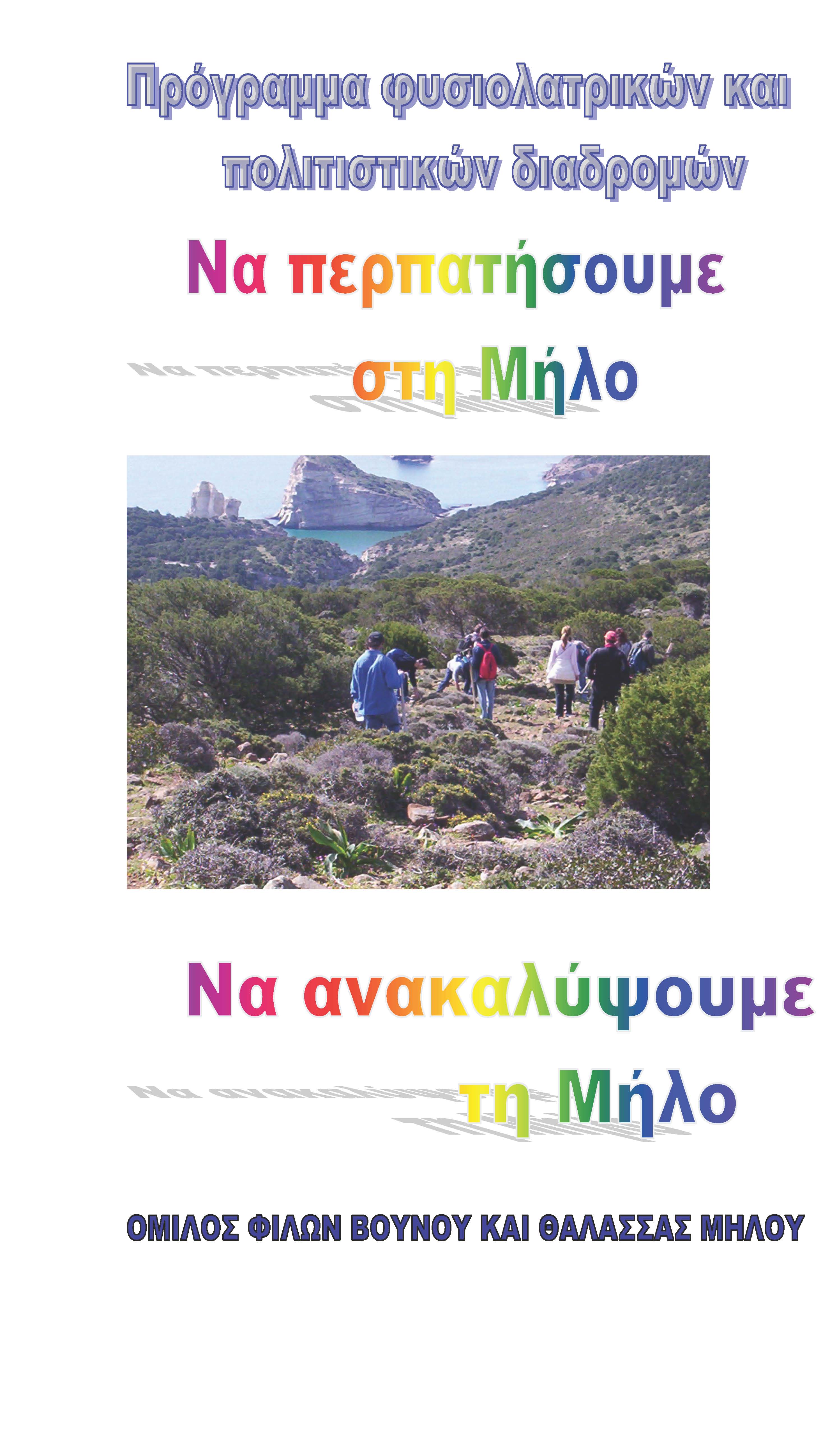 ΟΜΙΛΟΣ ΦΙΛΩΝ ΒΟΥΝΟΥ ΚΑΙ ΘΑΛΑΣΣΑΣ ΜΗΛΟΥ ΠΡΟΓΡΑΜΜΑ ΠΕΖΟΠΟΡΙΚΩΝ ΔΙΑΔΡΟΜΩΝ