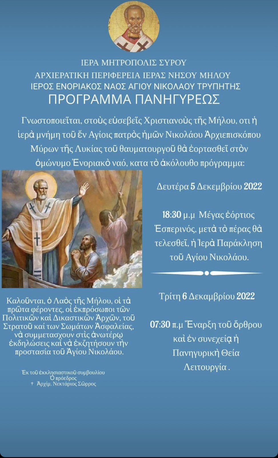 Πρόγραμμα εορτασμού Αγίου Νικολάου