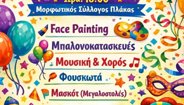 Παιδικό αποκριάτικο πάρτυ από τον μορφωτικό σύλλογο Πλάκας