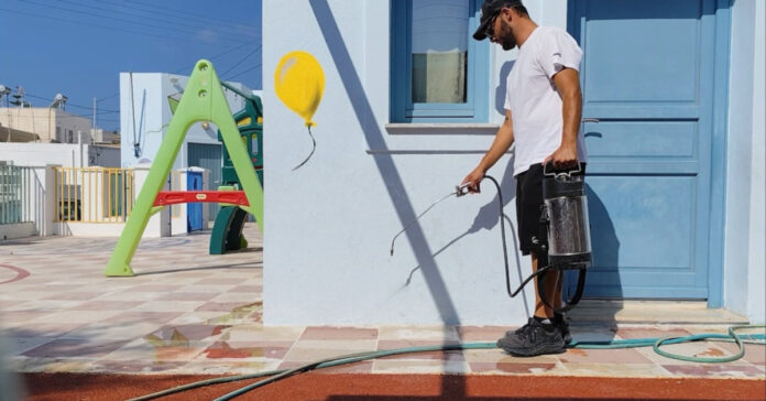 Ο Δήμος Θήρας προχωρά αυτήν την περίοδο σε εκτεταμένες εργασίες απεντόμωσης, μυοκτονίας και απολύμανσης σε όλες τις σχολικές μονάδες του νησιού.