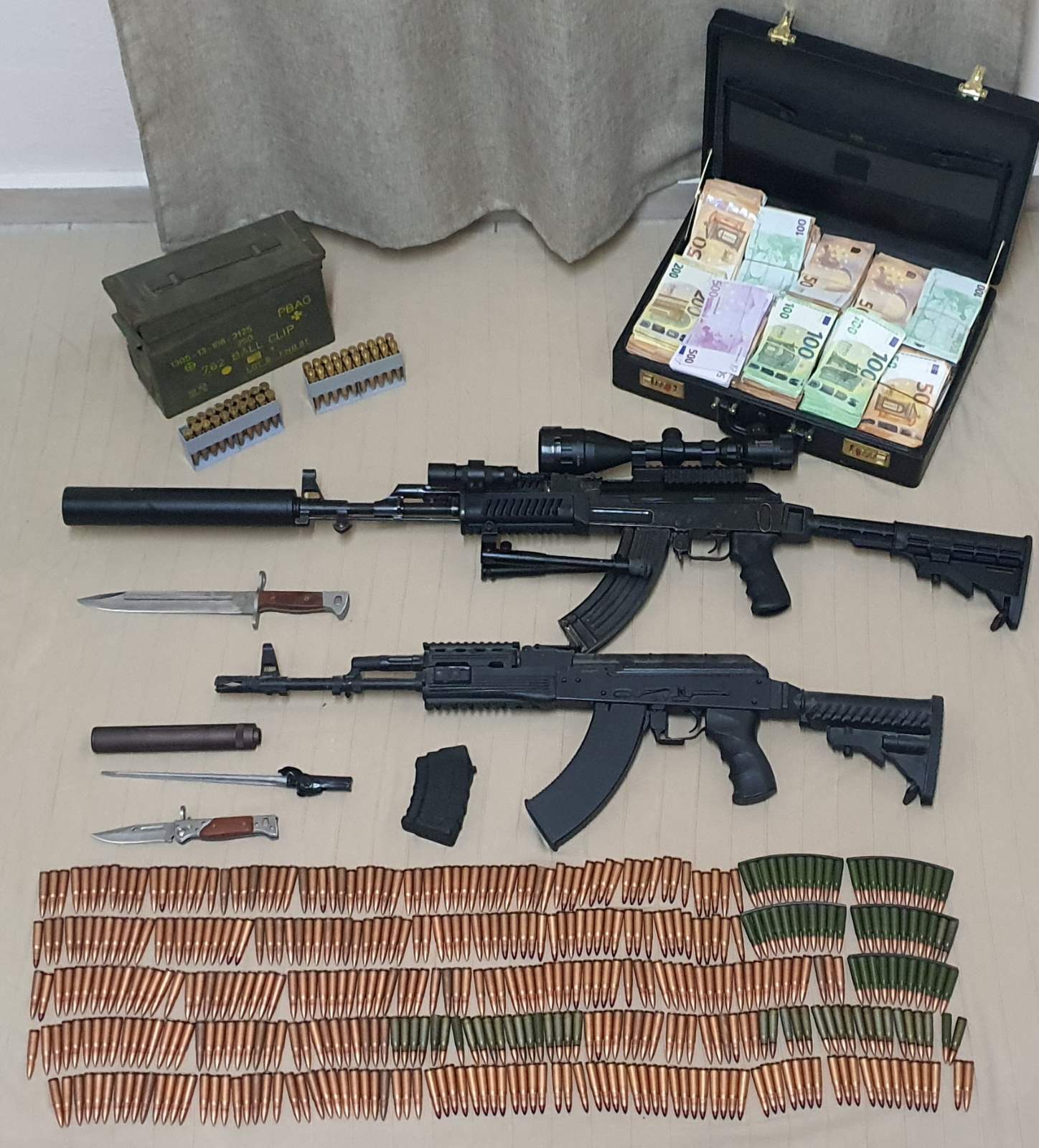 Κατασχέθηκαν πολεμικό τυφέκιο, πιστόλια, περίστροφα, κυνηγετικά όπλα, μαχαίρια, φυσίγγια, 252.480 ευρώ κ.α.