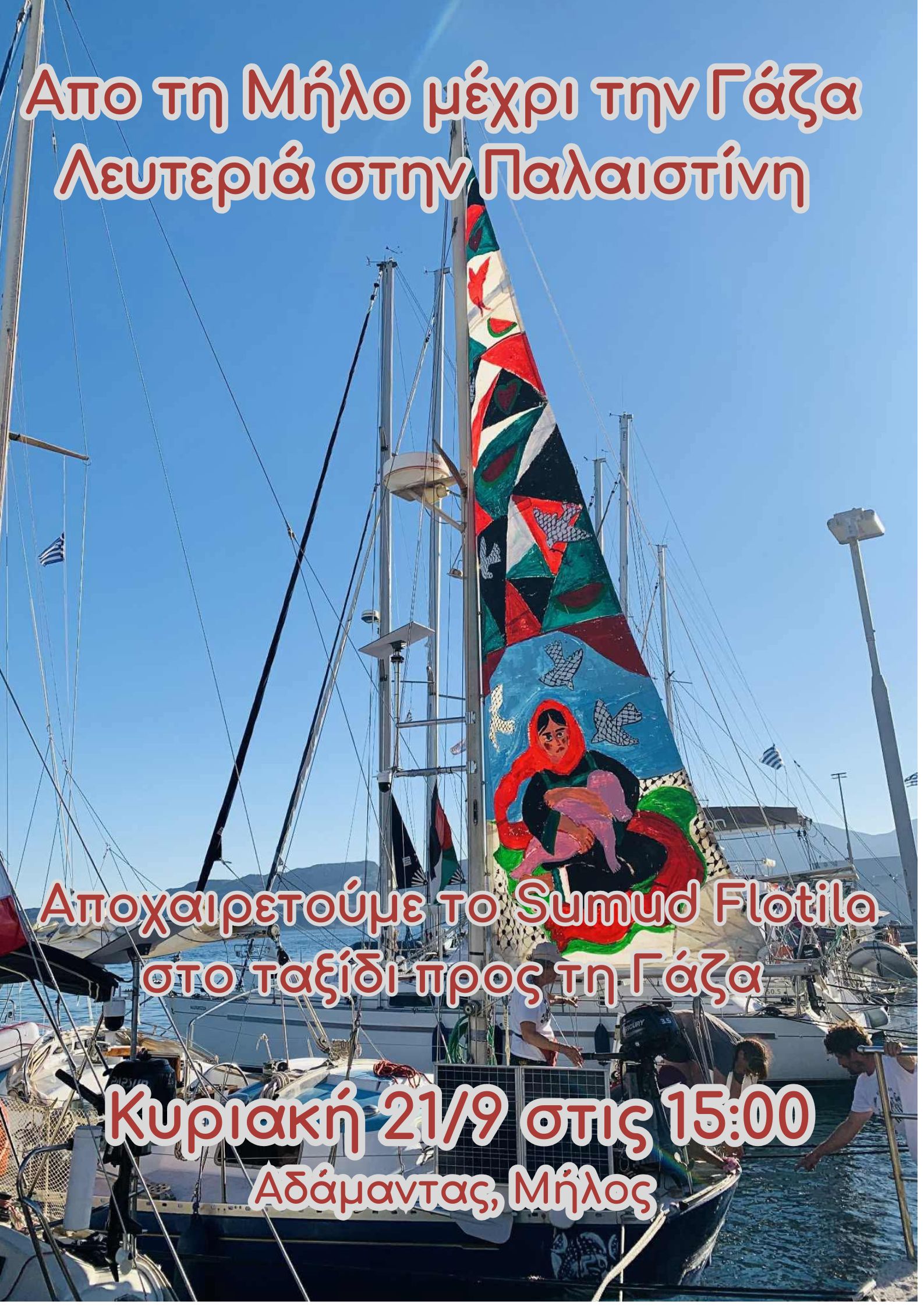 Στις 15:00 εκφράζουμε την αλληλεγγύη μας και αποχαιρετούμε το Sumud Flotilla στο ταξίδι του προς τη Γάζα.