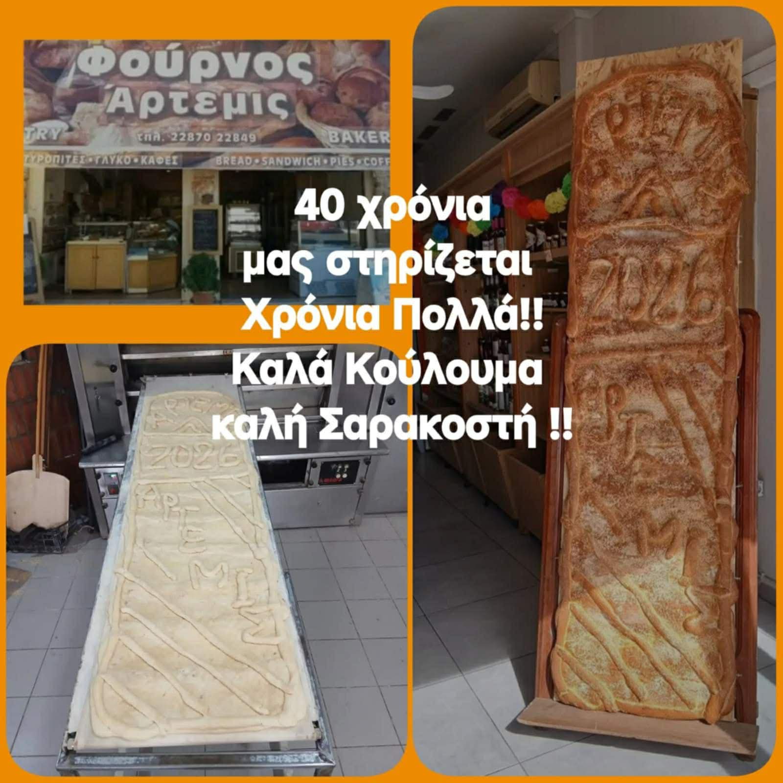 Μήλος Ο φούρνος Άρτεμις σας εύχεται καλή Σαρακοστή 22 Φεβ 2026 Εμφανίσεις: 553 Tweet Share Share Share