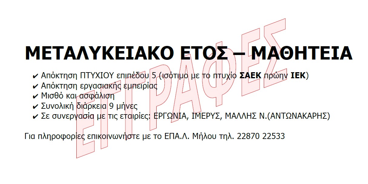 ΜΕΤΑΛΥΚΕΙΑΚΟ ΕΤΟΣ - ΜΑΘΗΤΕΙΑ - ΕΓΓΡΑΦΕΣ